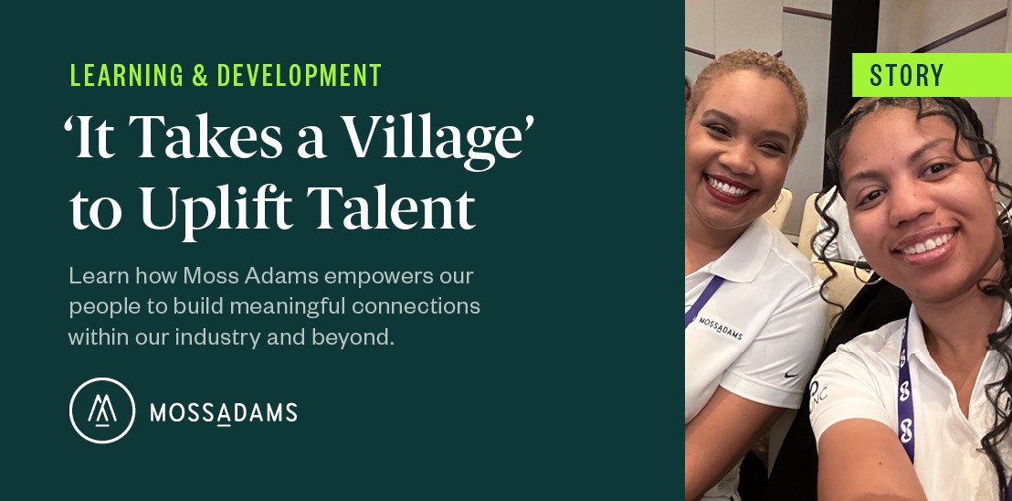 Moss Adams is committed to fostering an inclusive and diverse culture where everyone feels like they belong. This means investing in opportunities for our people to find community and mentorship to support their professional development at our firm and beyond.