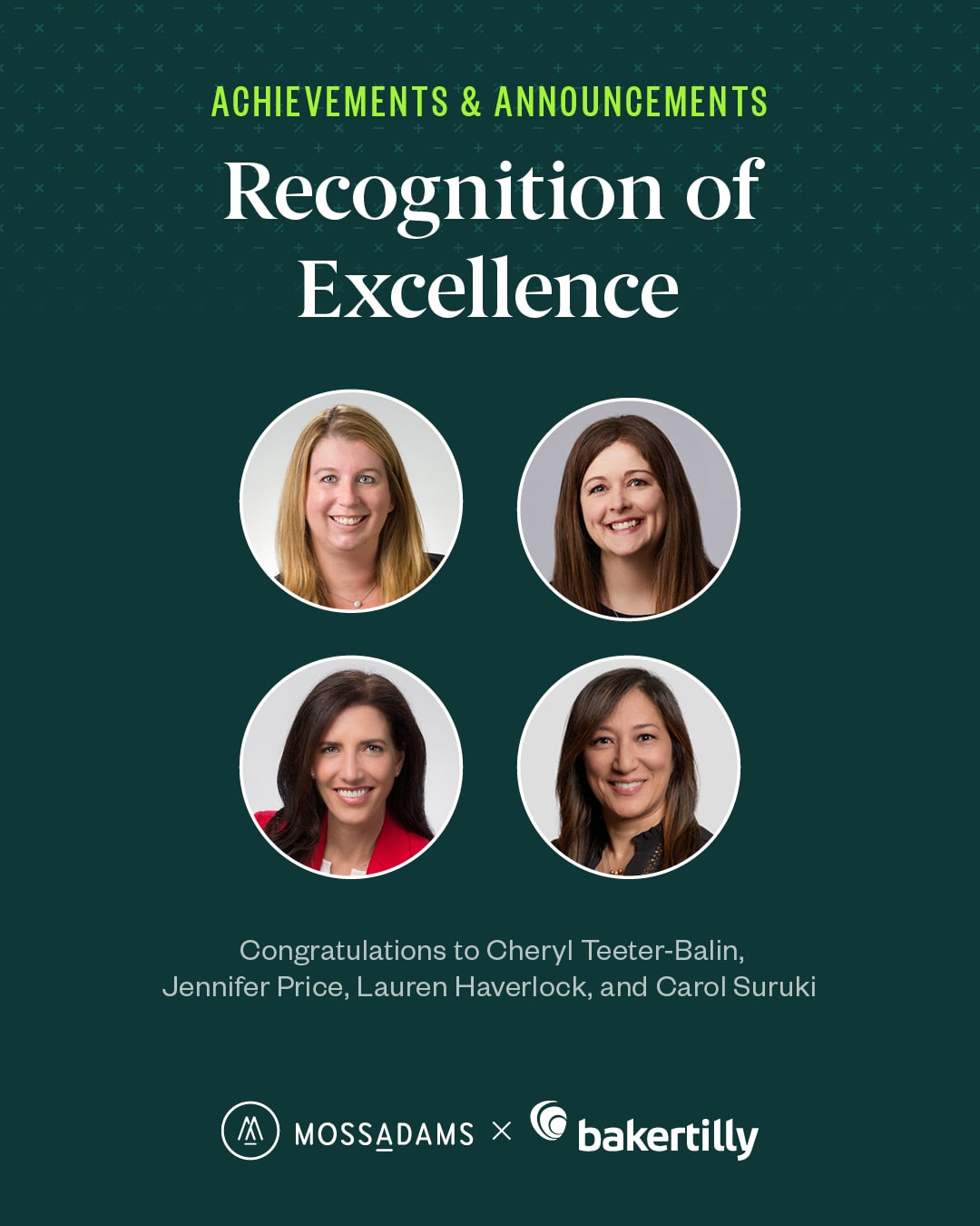 Baker Tilly US, LLP, Baker Tilly Advisory Group, LP and Moss Adams LLP and their affiliated entities operate under an alternative practice structure in accordance with the AICPA Code of Professional Conduct and applicable laws, regulations and professional standards. Baker Tilly Advisory Group, LP and its subsidiaries, and Baker Tilly US, LLP and its affiliated entities, trading as Baker Tilly, are members of the global network of Baker Tilly International Ltd., the members of which are separate and independent legal entities. Baker Tilly US, LLP and Moss Adams LLP are licensed CPA firms that provide assurance services to their clients. Baker Tilly Advisory Group, LP and its subsidiary entities provide tax and consulting services to their clients and are not licensed CPA firms. ISO certification services offered through Moss Adams Certifications LLC. Investment advisory offered through either Moss Adams Wealth Advisors LLC or Baker Tilly Wealth Management, LLC.