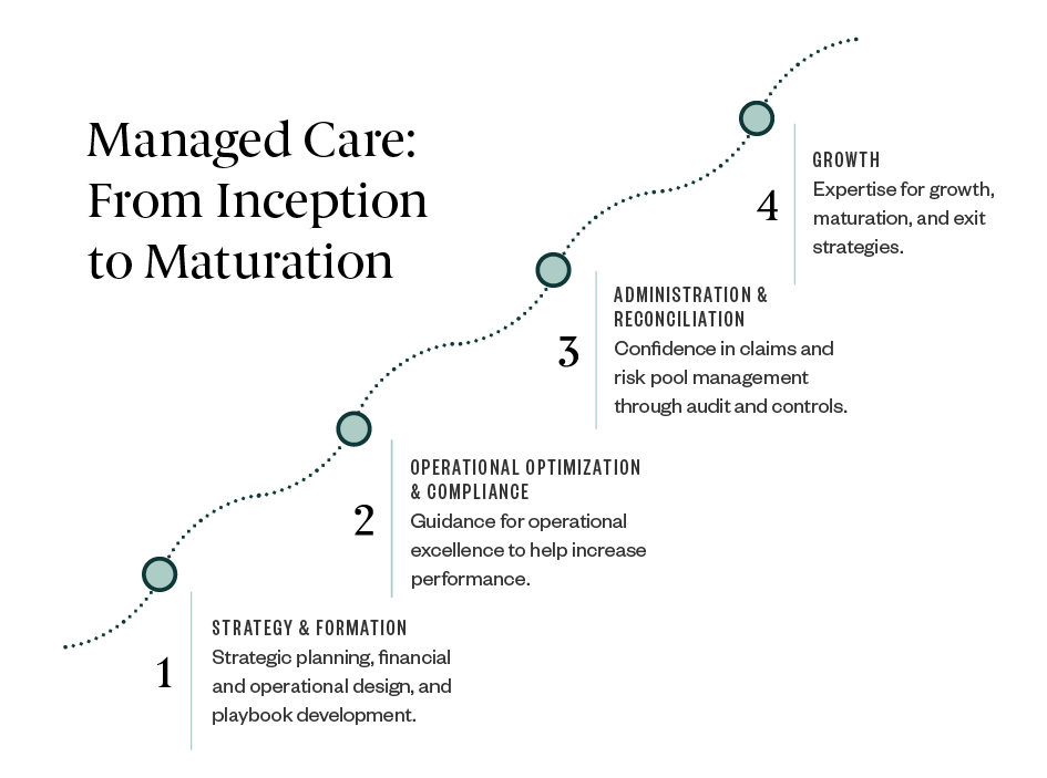 We regularly help organizations develop risk strategies and obtain California Knox-Keene licenses. Contact Karl Rebay at (949) 623-4193 or [email protected] to develop a strategy for your organization throughout the managed care life cycle, as pictured below, or to learn more about determining if you may be impacted by the new regulations.