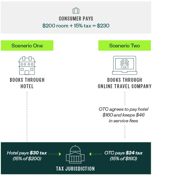 This clarification responds to legislation loopholes and ambiguities in the ways OTCs remit taxes. Because the methods OTCs use to deliver services can complicate tax remission, OTCs can end up remitting fewer taxes than hotels, despite charging the same amount—or more—for a hotel room. As a result, states and communities are losing out on revenue needed to support their infrastructures, and OTCs are failing to remain compliant with state, county, or city laws.