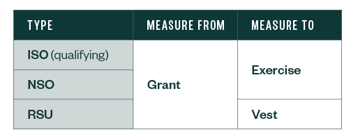 For an NSO, for example, total workdays would encompass the period between the grant date and exercise date.
