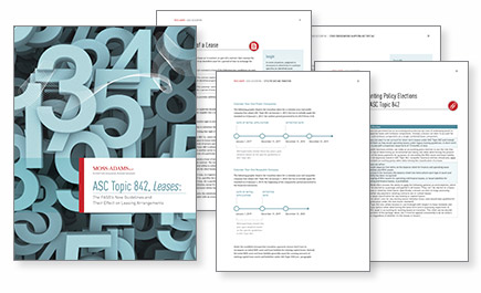 For more information about the new lease standard, refer to our guide ASC Topic 842, Leases: The FASB’s New Guidance and Their Effect on Leasing Arrangements.