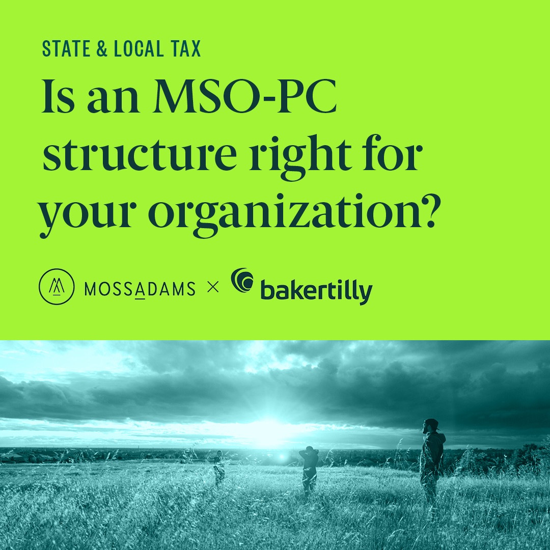 For guidance on whether an MSO-PC structure is right for your organization, or if you have further questions on accounting for this type of structure, contact your Moss Adams professional.