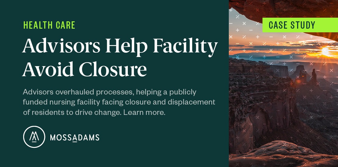 For more information on how our strategy acceleration and organizational change management framework can help your organization overcome significant challenges, please contact your Moss Adams professional.