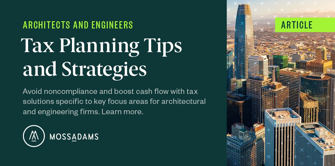 To learn more about solutions for the top tax issues for architects and engineers, contact your Moss Adams professional.