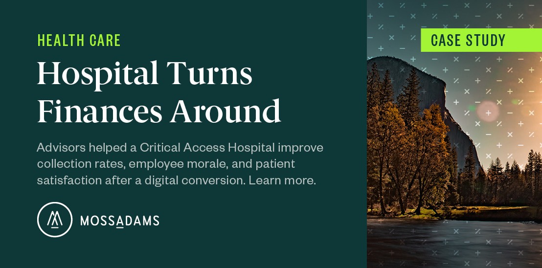 For more information on revenue cycle services to fit your organization’s needs, please contact your Moss Adams professional.