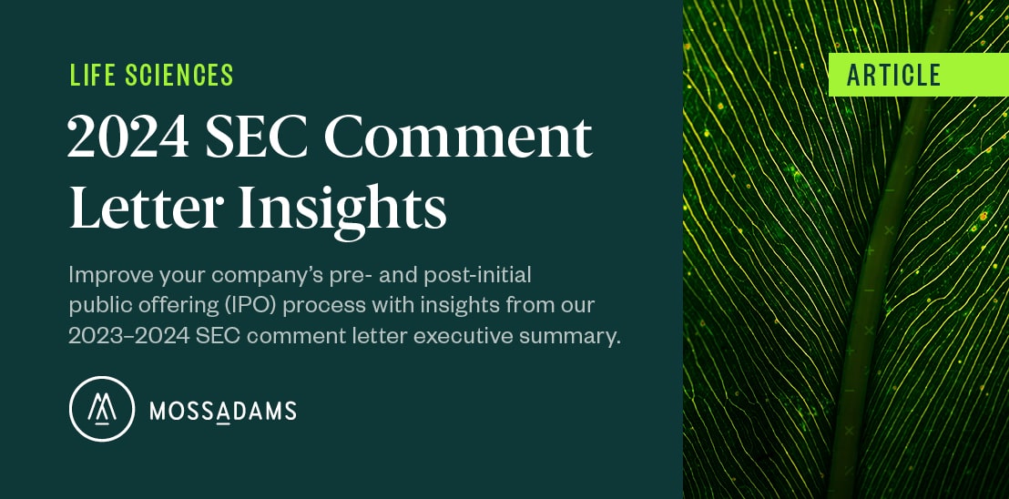 For more information on current SEC and life sciences reporting trends and how your business can leverage them, contact your Moss Adams professional.
