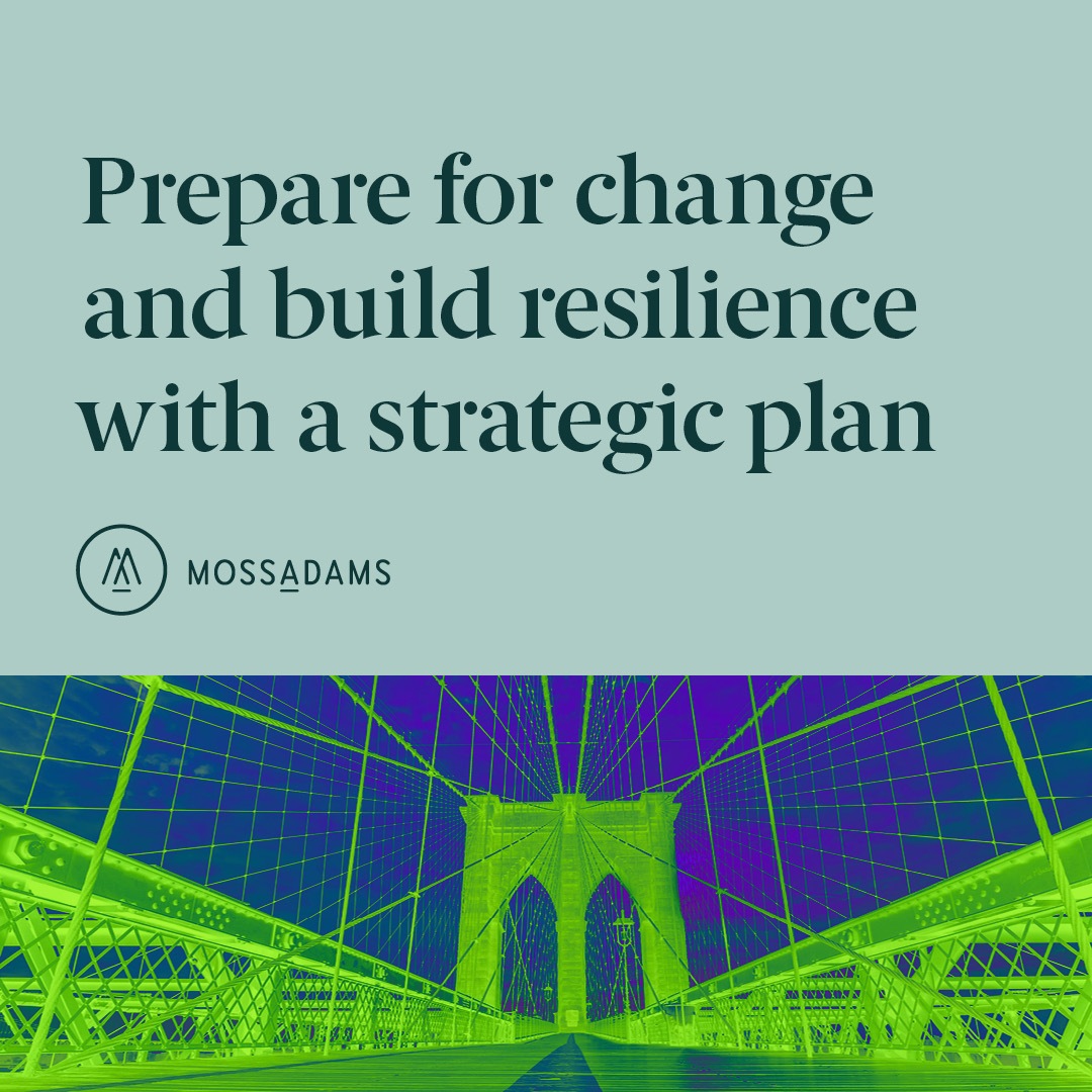 To learn more about developing a strategic plan that supports long-term success for your organization, contact your Moss Adams professional.