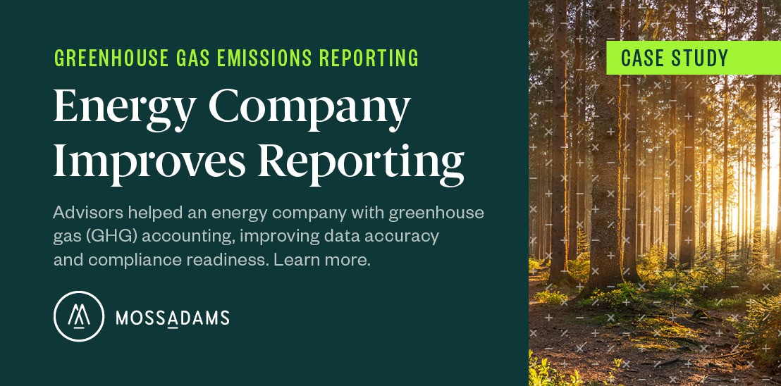 For more information on how a GHG emissions reporting solution can benefit your organization, please contact your Moss Adams professional.