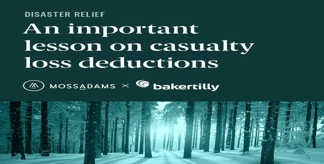 If you’ve experienced a casualty loss, consult your Moss Adams professional to understand potential additional tax benefits available to you.