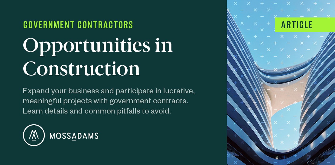 For help navigating the government contracting landscape for construction companies, contact your Moss Adams professional.