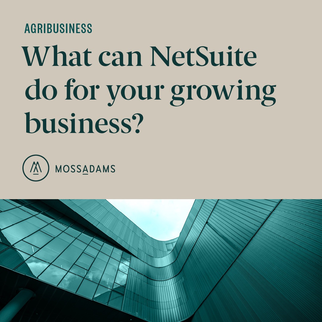 To learn more about how NetSuite can help support your agribusiness, contact your Moss Adams professional.