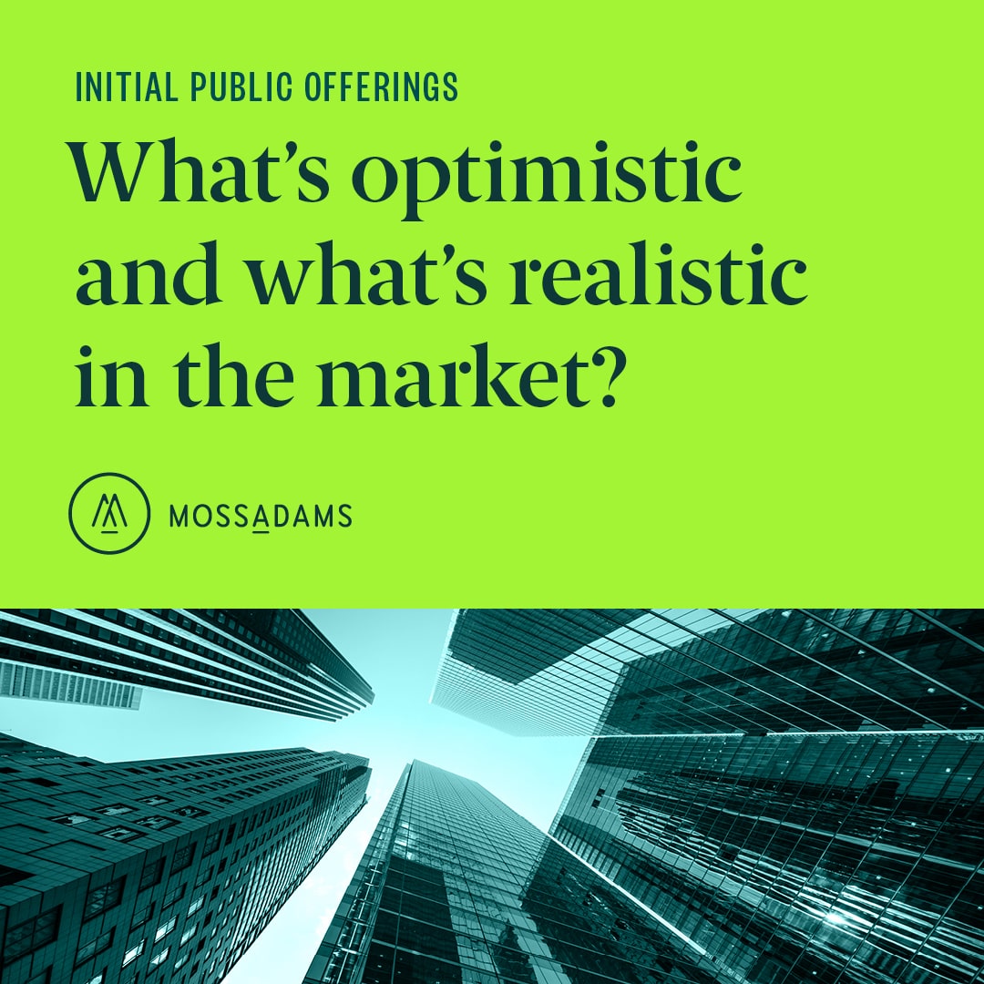 If you have further questions about the outlook for IPOs for 2025 or how you might be impacted, please contact your Moss Adams professional.