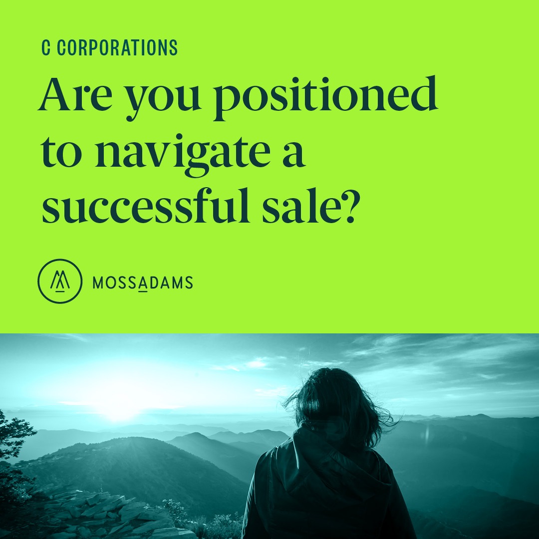 To learn more about key tax considerations associated with selling C corporations and how they can benefit your business transaction, contact your Moss Adams professional.
