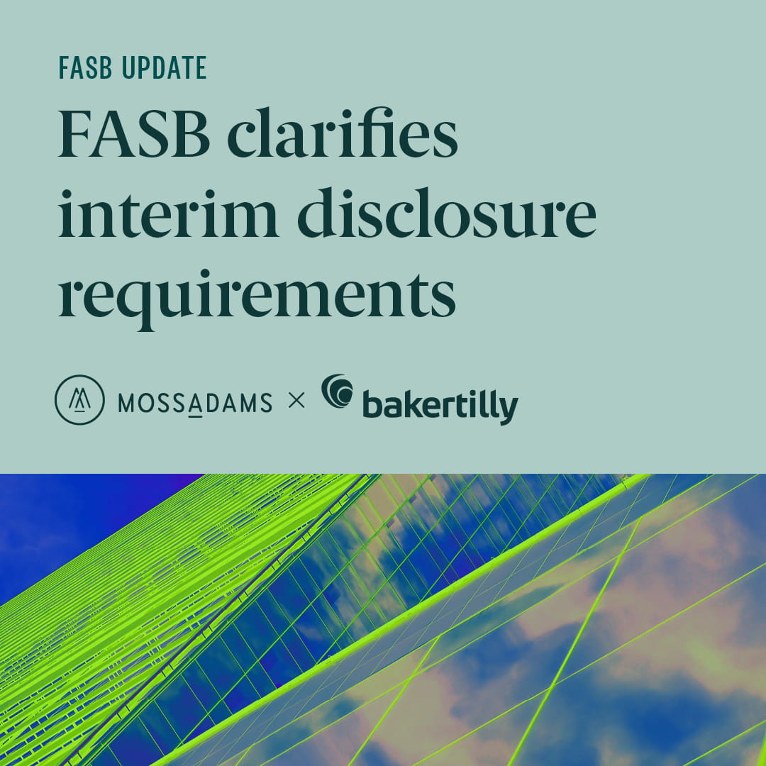 Baker Tilly US, LLP, Baker Tilly Advisory Group, LP and Moss Adams LLP and their affiliated entities operate under an alternative practice structure in accordance with the AICPA Code of Professional Conduct and applicable laws, regulations and professional standards. Baker Tilly Advisory Group, LP and its subsidiaries, and Baker Tilly US, LLP and its affiliated entities, trading as Baker Tilly, are members of the global network of Baker Tilly International Ltd., the members of which are separate and independent legal entities. Baker Tilly US, LLP and Moss Adams LLP are licensed CPA firms that provide assurance services to their clients. Baker Tilly Advisory Group, LP and its subsidiary entities provide tax and consulting services to their clients and are not licensed CPA firms. ISO certification services offered through Baker Tilly Certifications LLC. Investment advisory offered through either Moss Adams Wealth Advisors LLC or Baker Tilly Wealth Management, LLC.