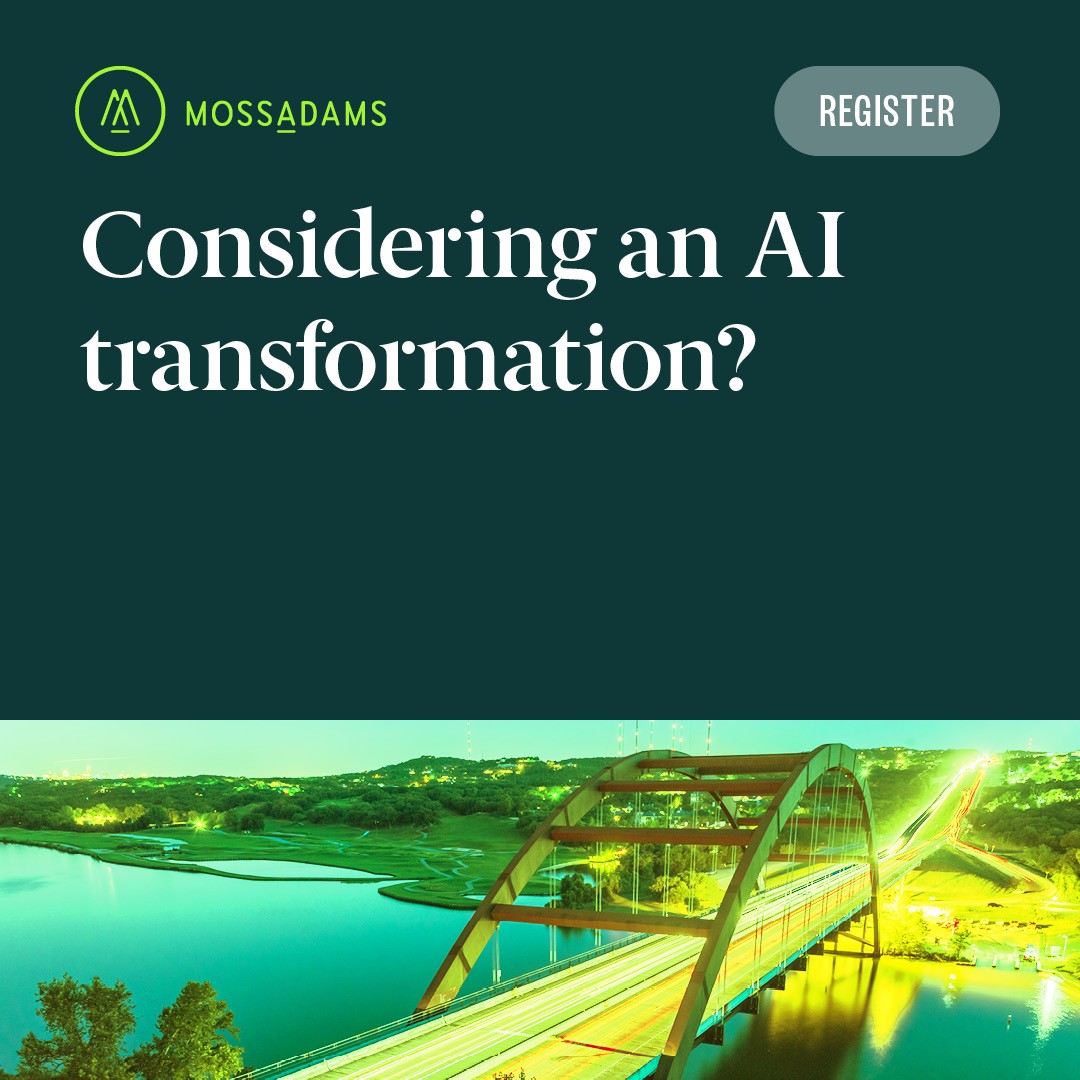Baker Tilly US, LLP, Baker Tilly Advisory Group, LP and Moss Adams LLP and their affiliated entities operate under an alternative practice structure in accordance with the AICPA Code of Professional Conduct and applicable laws, regulations and professional standards. Baker Tilly Advisory Group, LP and its subsidiaries, and Baker Tilly US, LLP and its affiliated entities, trading as Baker Tilly, are members of the global network of Baker Tilly International Ltd., the members of which are separate and independent legal entities. Baker Tilly US, LLP and Moss Adams LLP are licensed CPA firms that provide assurance services to their clients. Baker Tilly Advisory Group, LP and its subsidiary entities provide tax and consulting services to their clients and are not licensed CPA firms. ISO certification services offered through Moss Adams Certifications LLC. Investment advisory offered through either Moss Adams Wealth Advisors LLC or Baker Tilly Wealth Management, LLC.