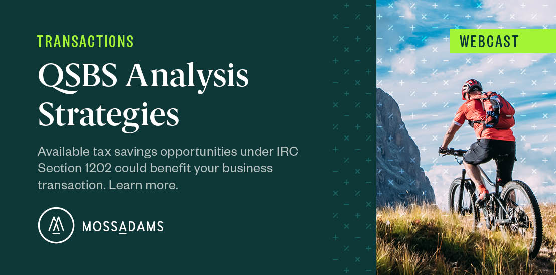 Whether your company is going through a transaction and receiving requests from shareholders to verify if their stock is qualified small business stock (QSBS) or if you’re at the beginning of an investment and already planning for a future exit, there are several considerations and analyses needed.