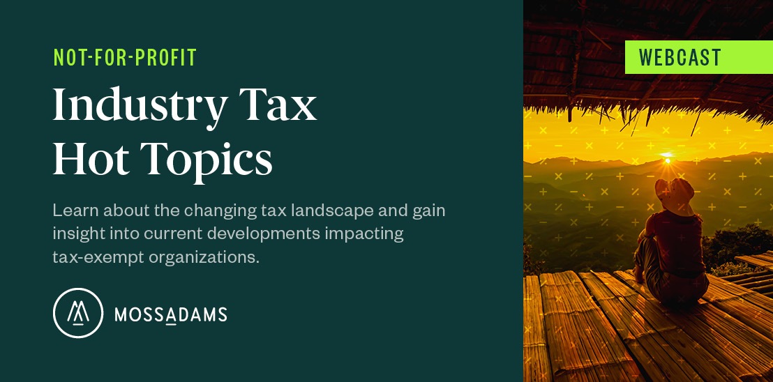 Watch our webcast, Fall 2024 Tax Update for Not-for-Profit Organizations, in which we’ll explore important tax updates from the US Department of the Treasury, Congress, and the IRS regarding implications for tax-exempt organizations and governmental entities.