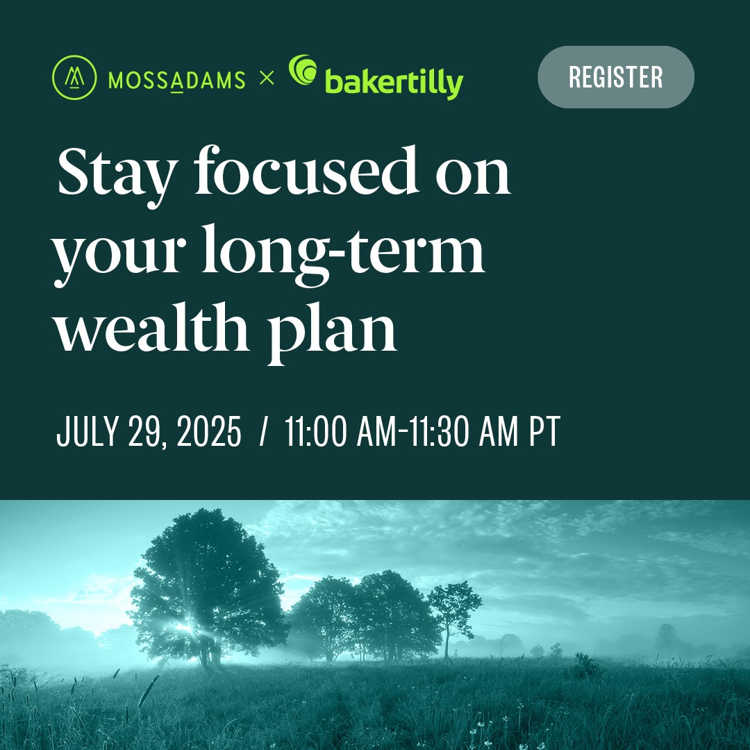 Baker Tilly US, LLP, Baker Tilly Advisory Group, LP and Moss Adams LLP and their affiliated entities operate under an alternative practice structure in accordance with the AICPA Code of Professional Conduct and applicable laws, regulations and professional standards. Baker Tilly Advisory Group, LP and its subsidiaries, and Baker Tilly US, LLP and its affiliated entities, trading as Baker Tilly, are members of the global network of Baker Tilly International Ltd., the members of which are separate and independent legal entities. Baker Tilly US, LLP and Moss Adams LLP are licensed CPA firms that provide assurance services to their clients. Baker Tilly Advisory Group, LP and its subsidiary entities provide tax and consulting services to their clients and are not licensed CPA firms. ISO certification services offered through Moss Adams Certifications LLC. Investment advisory offered through either Moss Adams Wealth Advisors LLC or Baker Tilly Wealth Management, LLC.