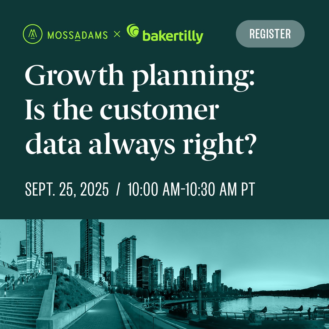 Baker Tilly US, LLP, Baker Tilly Advisory Group, LP and Moss Adams LLP and their affiliated entities operate under an alternative practice structure in accordance with the AICPA Code of Professional Conduct and applicable laws, regulations and professional standards. Baker Tilly Advisory Group, LP and its subsidiaries, and Baker Tilly US, LLP and its affiliated entities, trading as Baker Tilly, are members of the global network of Baker Tilly International Ltd., the members of which are separate and independent legal entities. Baker Tilly US, LLP and Moss Adams LLP are licensed CPA firms that provide assurance services to their clients. Baker Tilly Advisory Group, LP and its subsidiary entities provide tax and consulting services to their clients and are not licensed CPA firms. ISO certification services offered through Moss Adams Certifications LLC. Investment advisory offered through either Moss Adams Wealth Advisors LLC or Baker Tilly Wealth Management, LLC.