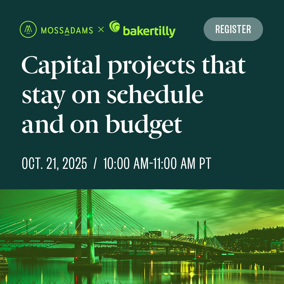 Baker Tilly US, LLP, Baker Tilly Advisory Group, LP and Moss Adams LLP and their affiliated entities operate under an alternative practice structure in accordance with the AICPA Code of Professional Conduct and applicable laws, regulations and professional standards. Baker Tilly Advisory Group, LP and its subsidiaries, and Baker Tilly US, LLP and its affiliated entities, trading as Baker Tilly, are members of the global network of Baker Tilly International Ltd., the members of which are separate and independent legal entities. Baker Tilly US, LLP and Moss Adams LLP are licensed CPA firms that provide assurance services to their clients. Baker Tilly Advisory Group, LP and its subsidiary entities provide tax and consulting services to their clients and are not licensed CPA firms. ISO certification services offered through Moss Adams Certifications LLC. Investment advisory offered through either Moss Adams Wealth Advisors LLC or Baker Tilly Wealth Management, LLC.