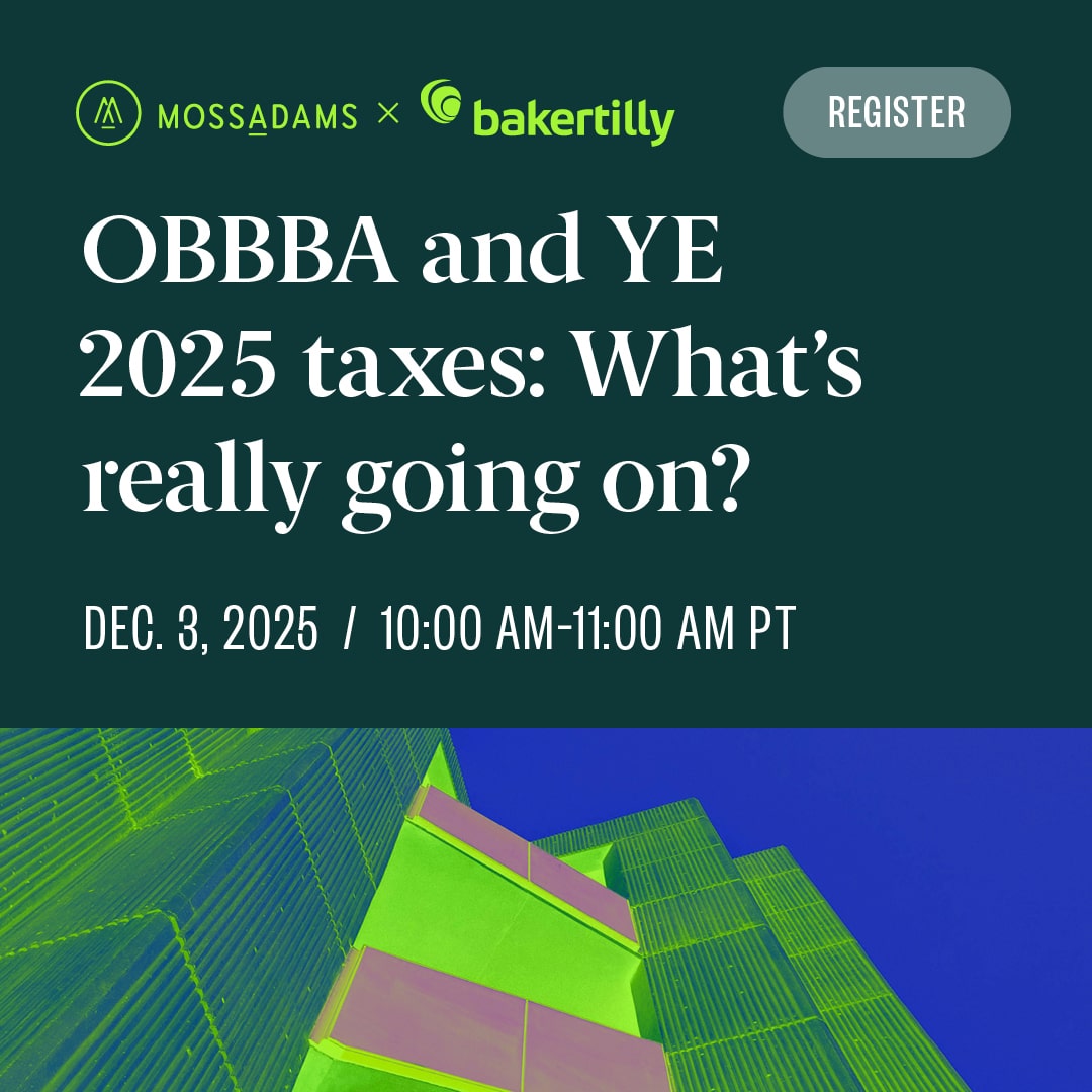 Baker Tilly US, LLP, Baker Tilly Advisory Group, LP and Moss Adams LLP and their affiliated entities operate under an alternative practice structure in accordance with the AICPA Code of Professional Conduct and applicable laws, regulations and professional standards. Baker Tilly Advisory Group, LP and its subsidiaries, and Baker Tilly US, LLP and its affiliated entities, trading as Baker Tilly, are members of the global network of Baker Tilly International Ltd., the members of which are separate and independent legal entities. Baker Tilly US, LLP and Moss Adams LLP are licensed CPA firms that provide assurance services to their clients. Baker Tilly Advisory Group, LP and its subsidiary entities provide tax and consulting services to their clients and are not licensed CPA firms. ISO certification services offered through Moss Adams Certifications LLC. Investment advisory offered through either Moss Adams Wealth Advisors LLC or Baker Tilly Wealth Management, LLC.