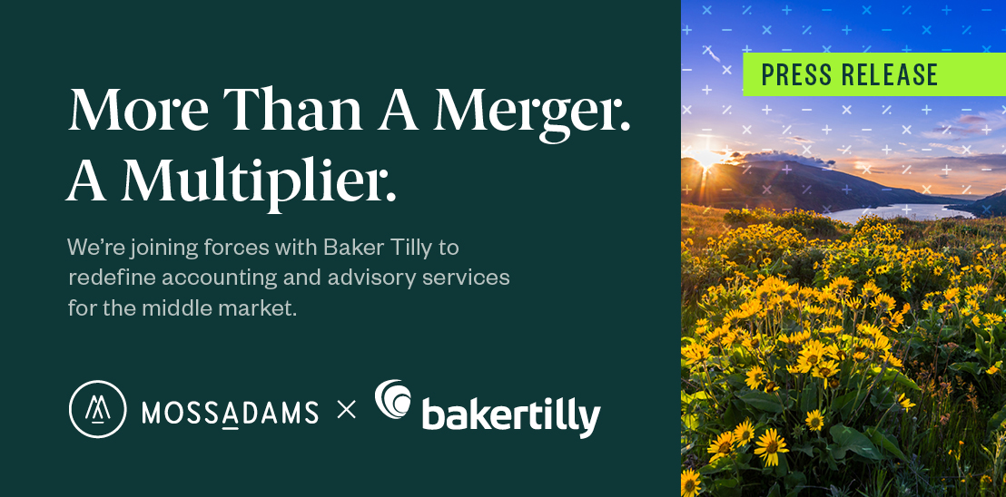 CHICAGO and SEATTLE (April 21, 2025) – In a transformative move that redefines advisory and accounting services for the middle market, Baker Tilly and Moss Adams today announced their planned combination to create the sixth largest advisory CPA firm in the US. Expected to close in early June of this year, the combination strengthens the firms’ industry specialization, expands its geographic reach and enhances its capabilities across advisory, tax and assurance services.