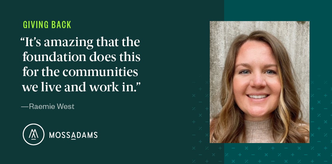 The McKenzie River in Oregon and the surrounding area have been a constant in Raemie West’s (she/her) life since early childhood. Raemie, a senior executive assistant at Moss Adams, travels along the river when she commutes to the firm’s Eugene office. The region is special to her, so Raemie jumped at the opportunity to support her local community.