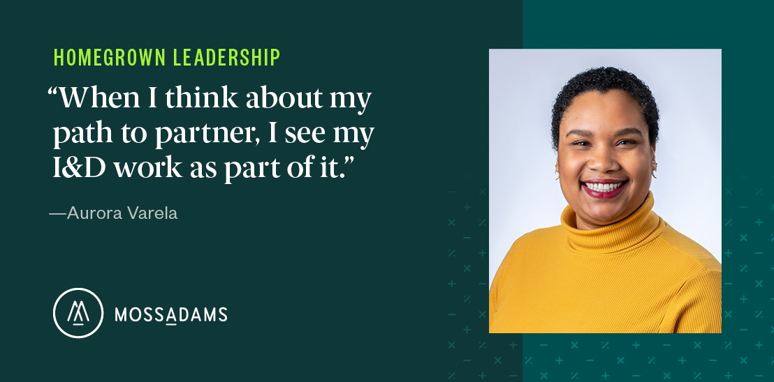 “There is no end destination with I&D—it’s a journey with a lot of work, which is terrifying at times,” Aurora said. “I don’t have to be the person doing that work, but it’s important to me that I stay involved to steer us in the right direction. I often say my clients have a mission to save lives, and I’m a part of that one audit at a time. My mission is to evolve the culture of belonging at Moss Adams because, to me, that work is just as meaningful.”
