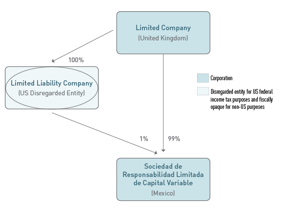 However, unlike the United States, some foreign jurisdictions require multiple members for incorporation of these entities—India, Chile, and Mexico, for example. A US DRE is often included as one of those members because, like in the foreign jurisdiction, DREs are cheap and easy to establish while still maintaining liability protection for its shareholders. This first example demonstrates a structure that will be impacted by the proposed regulations if or when they’re enacted.
