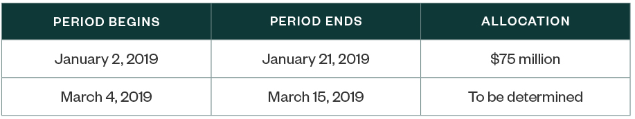 The first application period ended on August 20, 2018. The next two CCTC application periods for the program’s 2018–2019 fiscal year are as follows: