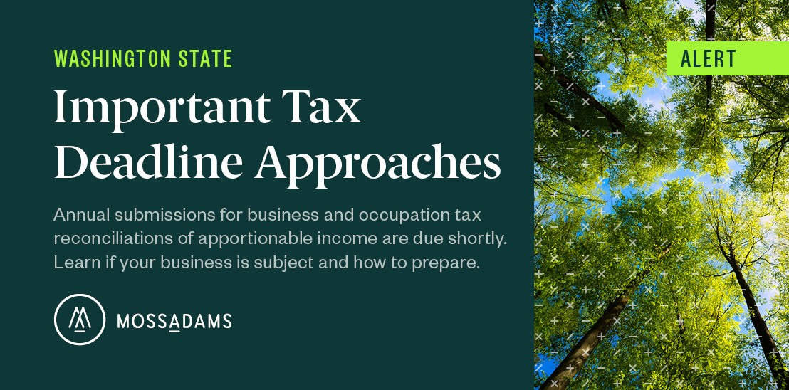 If you have questions about your B&O tax returns or determining nexus in the state of Washington, please contact your Moss Adams professional.