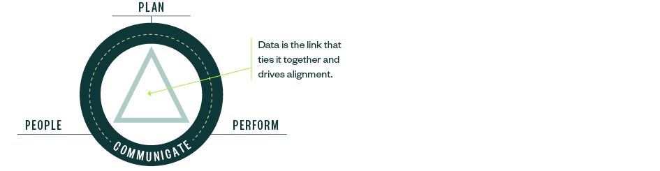 To strengthen an organization with operational KPIs, it’s important to consider four key aspects: planning, performance, people, and communication.