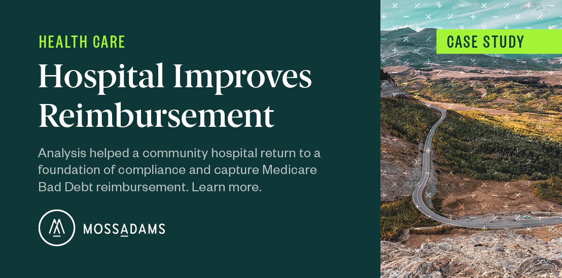 For more information on Medicare Bad Debt or to receive a complimentary policy review, please contact your Moss Adams professional.