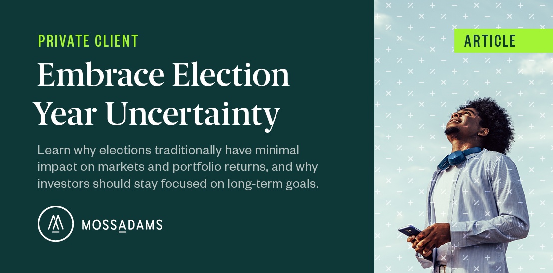 If you’d like help navigating the complex investment landscape and create a portfolio that can weather business cycles and election years, please contact your Moss Adams professional.