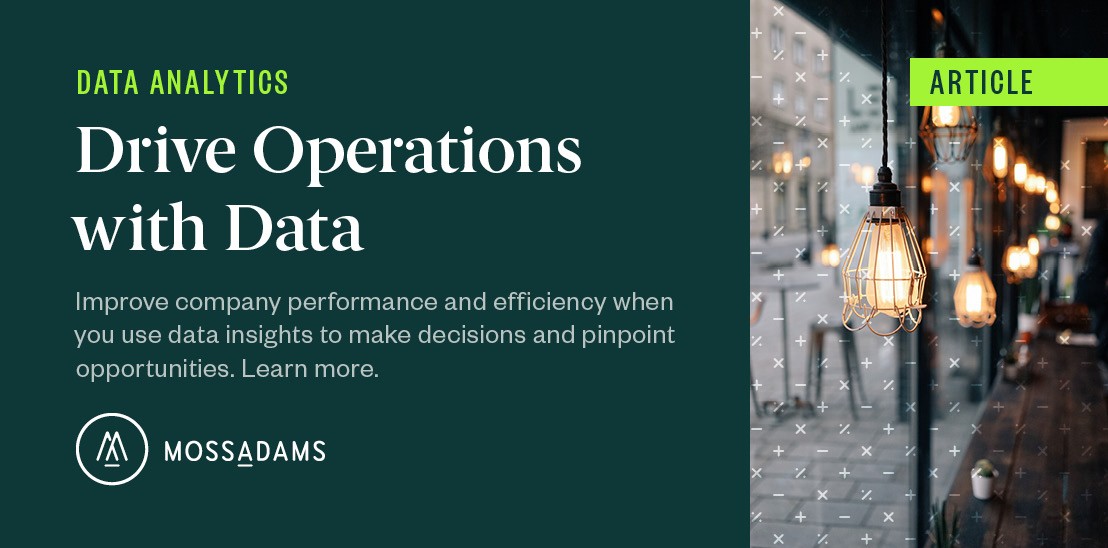 For help assessing your current data structure and implementing more robust data analytics platforms and processes, contact your Moss Adams professional.