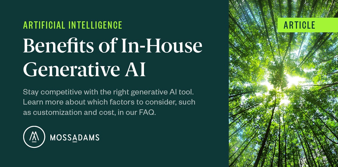 To learn how an in-house generative AI tool can unlock your organization’s business potential, contact your Moss Adams professional.