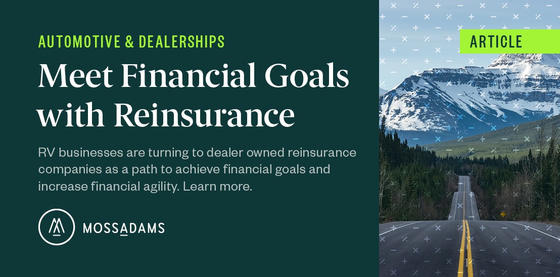 To learn more about how dealer owned reinsurance companies can benefit your RV business, contact your Moss Adams professional.