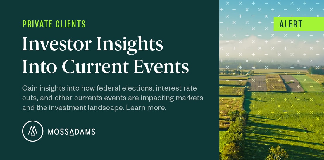 To learn how to navigate the complex investment landscape and align your portfolio for times ahead contact your Moss Adams professional.