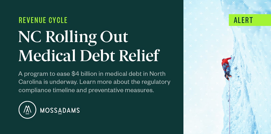 For further assistance in navigating the requirements set by the Medical Debt Relief Incentive Program, please reach out to Moss Adams.