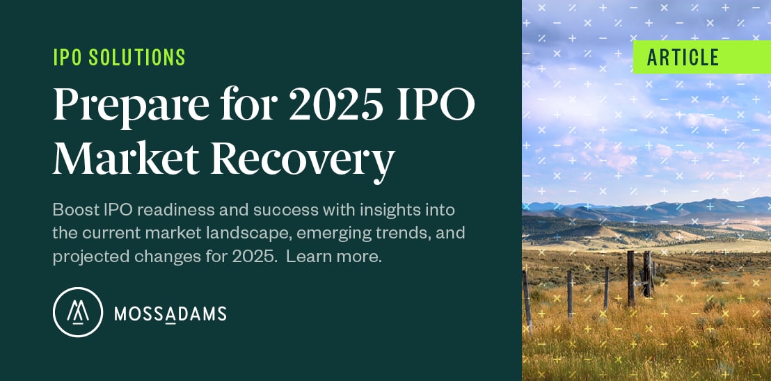 For more information on the current IPO landscape, emerging trends and how your business can leverage them, contact your Moss Adams professional.