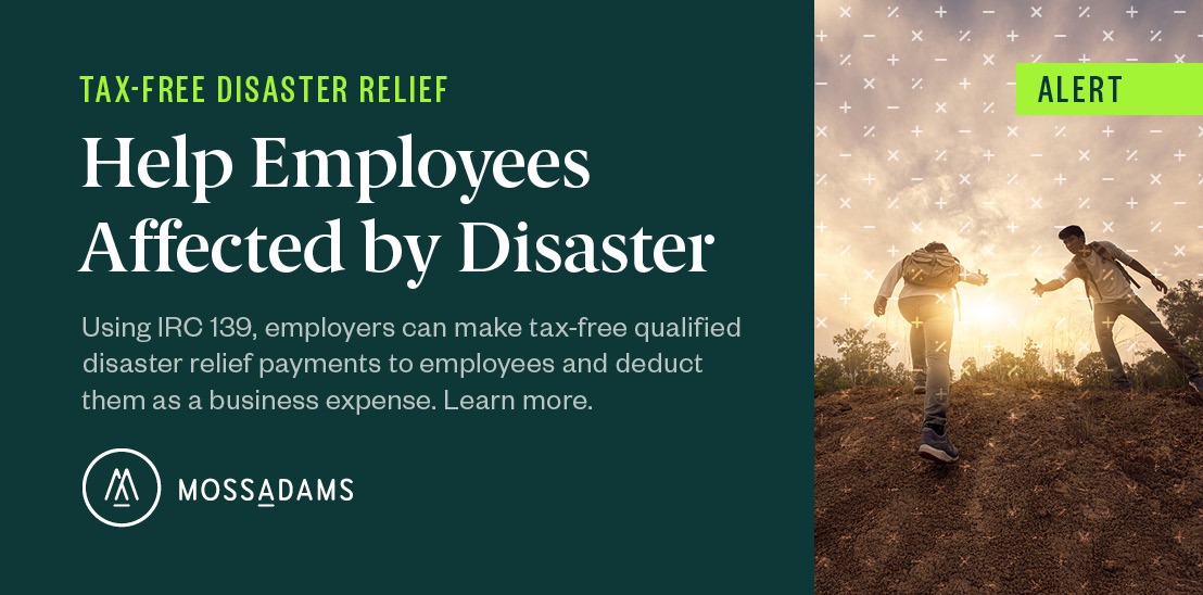 Businesses can help ease the financial burden on employees who have been affected by the California wildfires and other federally declared disasters while benefiting from favorable tax treatment by utilizing Internal Revenue Code (IRC) Section 139.