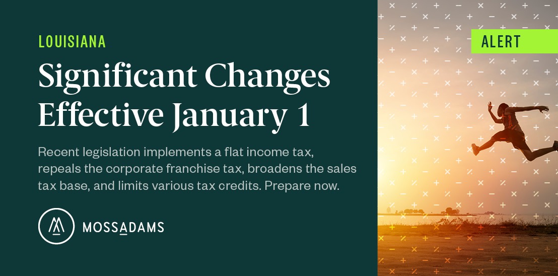 For help navigating these changes in Louisiana tax code, please contact your Moss Adams professional.