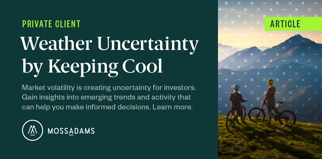 To learn more about how to effectively weather market volatility, contact your Moss Adams professional.