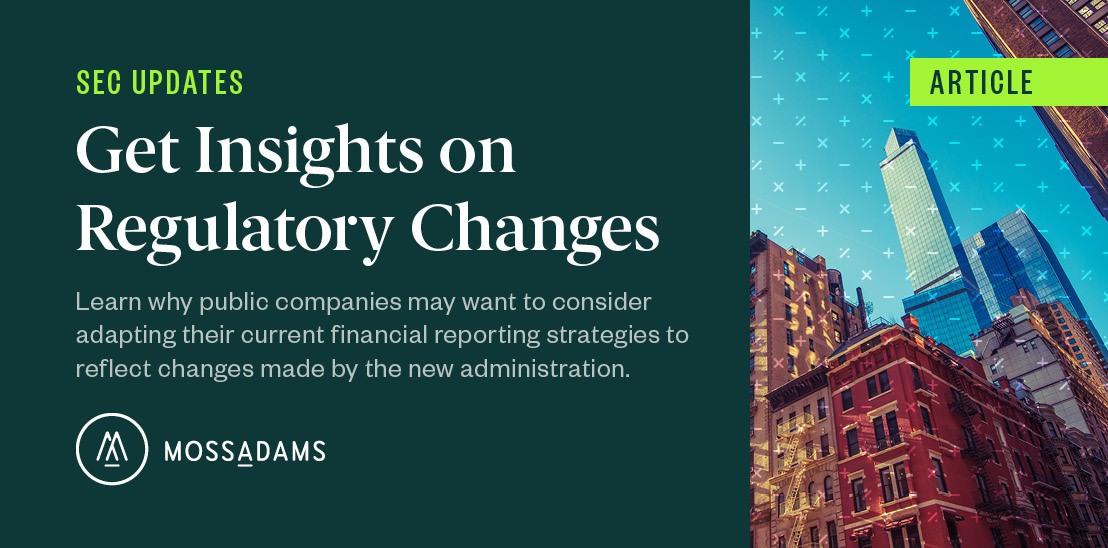 If you have questions about the changes happening at the SEC or other regulatory and financial reporting changes, contact your Moss Adams professional.