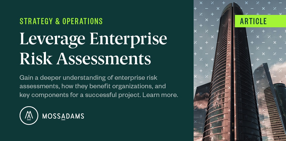 To learn more about how your organization can benefit from enterprise risk assessments, contact your Moss Adams professional.