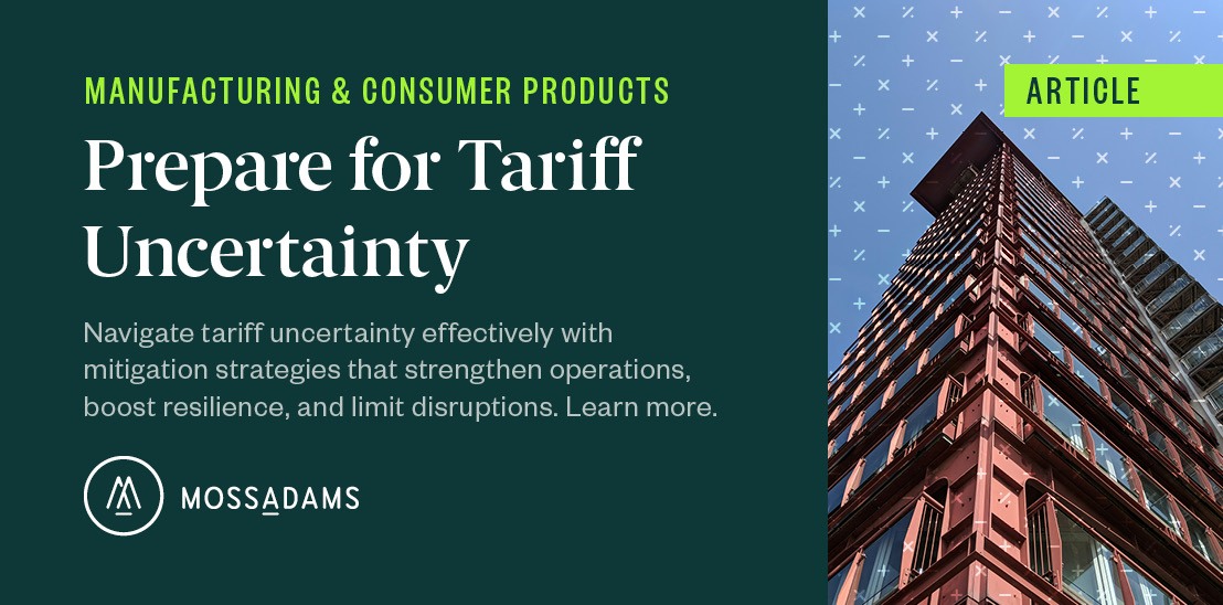 To learn more about tariff-related business strategies that can benefit your business, contact your Moss Adams professional.