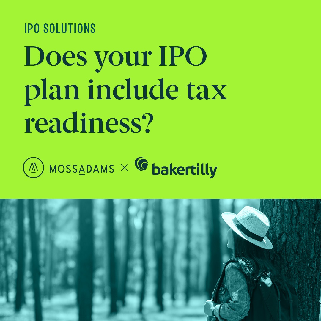 To learn more about how tax readiness can benefit your IPO and the best way to implement it in your situation, contact your firm professional.