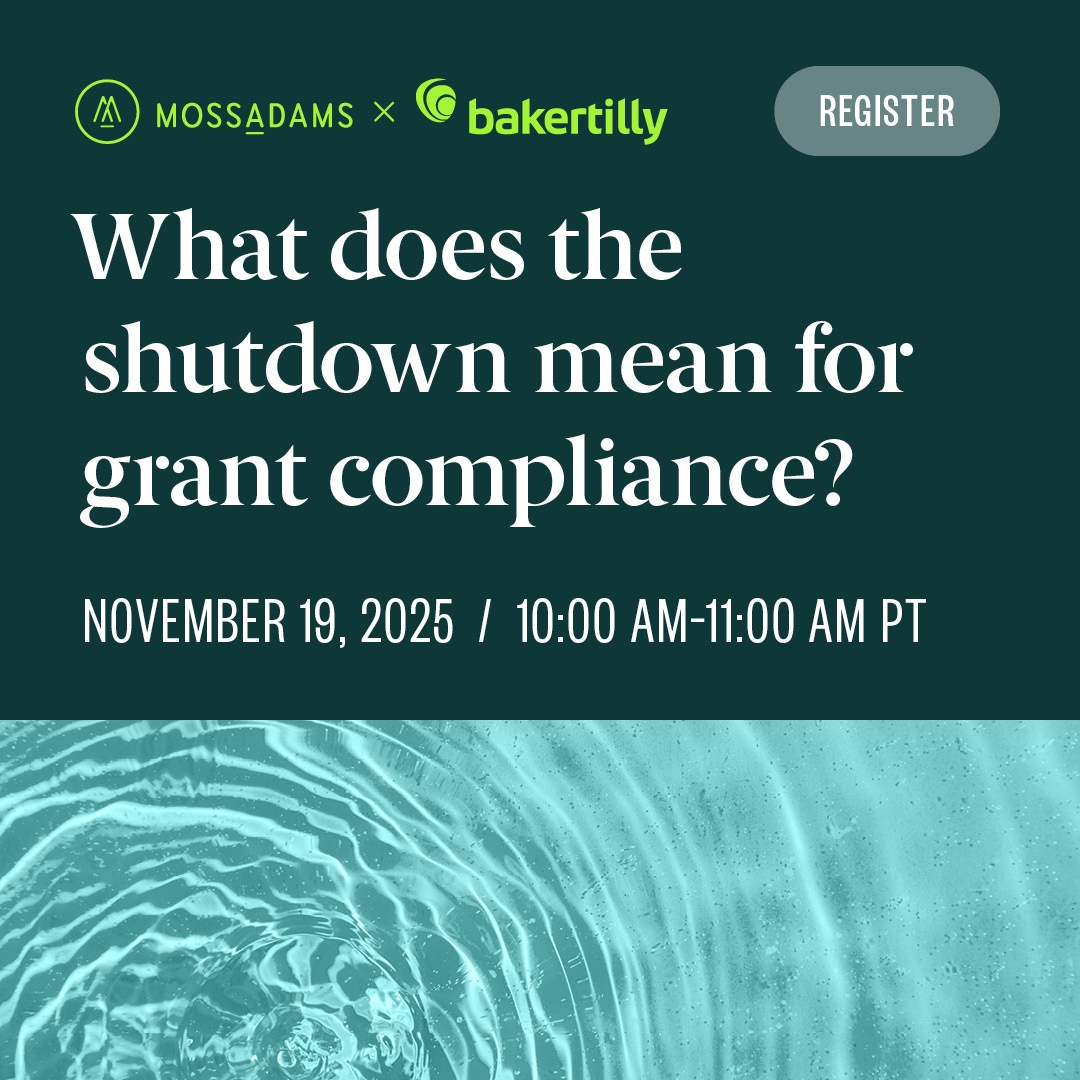 Join us for our webcast, Shutdown and OMB Impacts on Accounting and Compliance, in which we’ll discuss accounting complexities for now inactive awards, impacts to revenue recognition, and the schedule of expenditures of federal awards (SEFA).