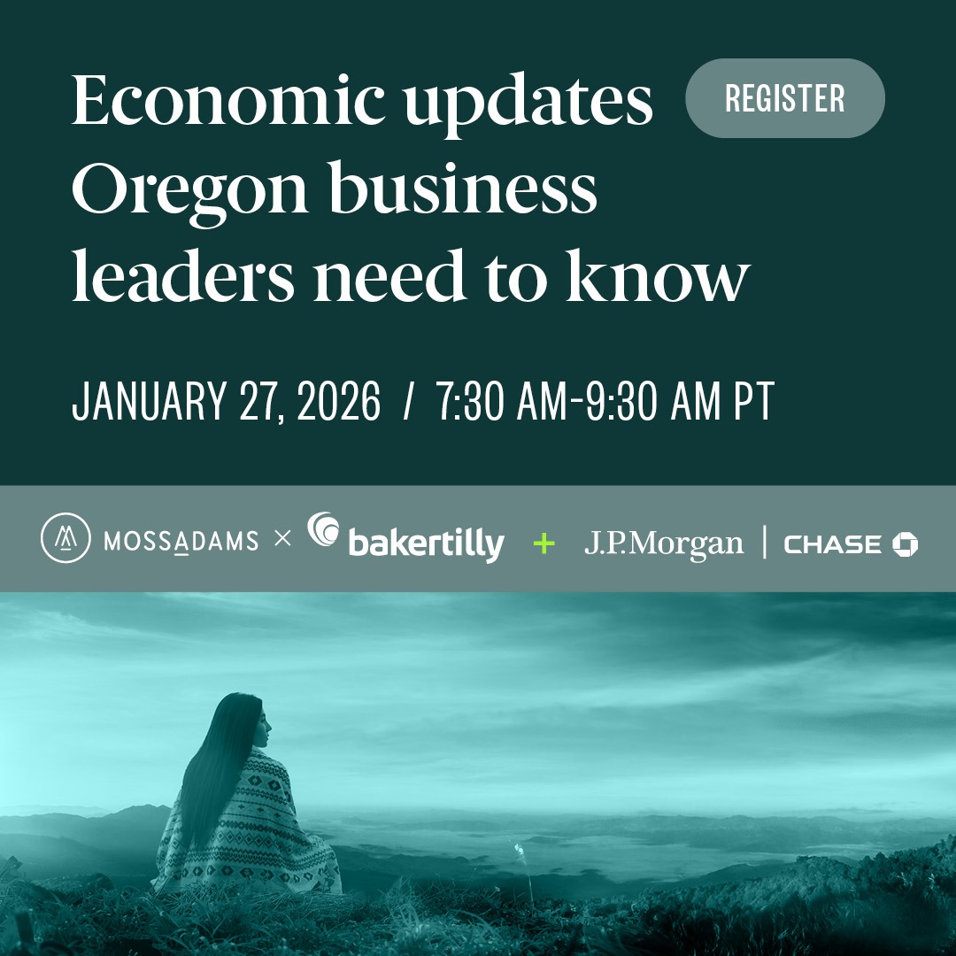 Join us for an insightful breakfast in Lake Oswego at which we'll delve into the dynamic economic environment of 2026. You’ll hear from several esteemed speakers from both Baker Tilly and JPMorgan who will speak to the various topics business leaders are asking about in 2026, including:
